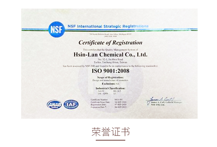 欣蘭于2008年通過ISO的認證